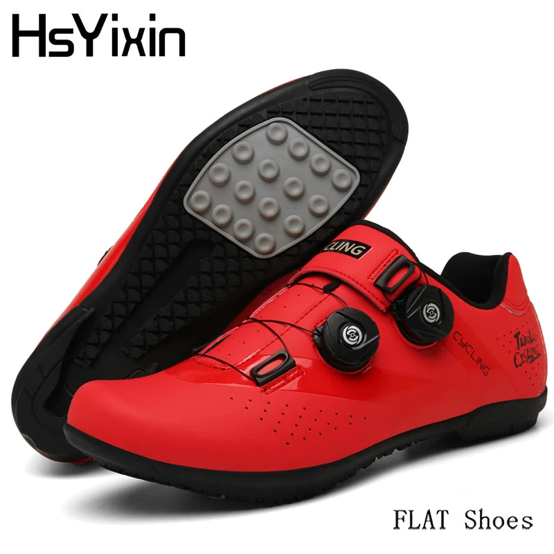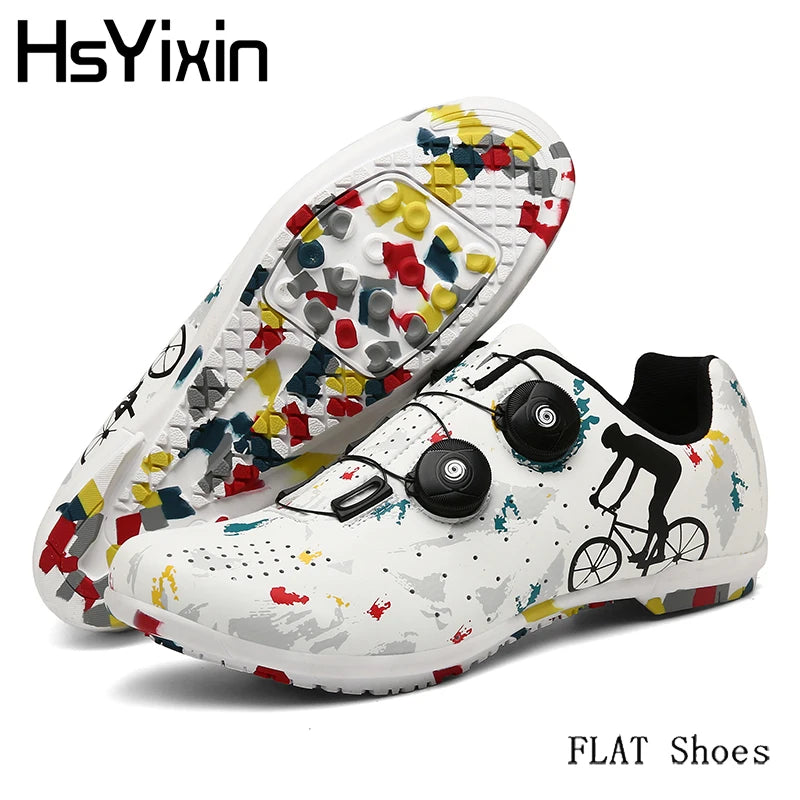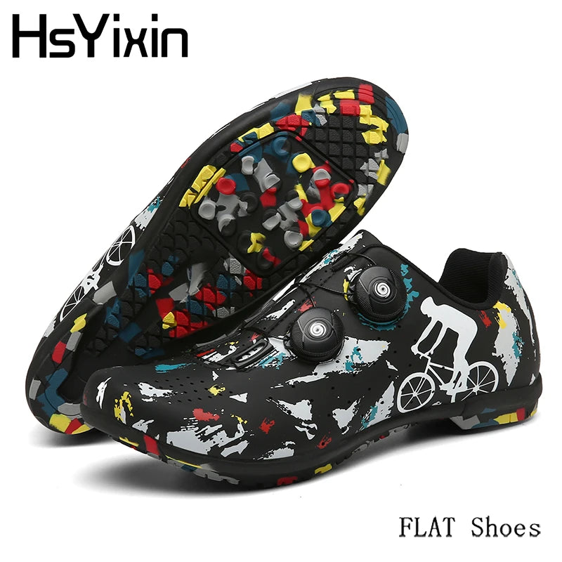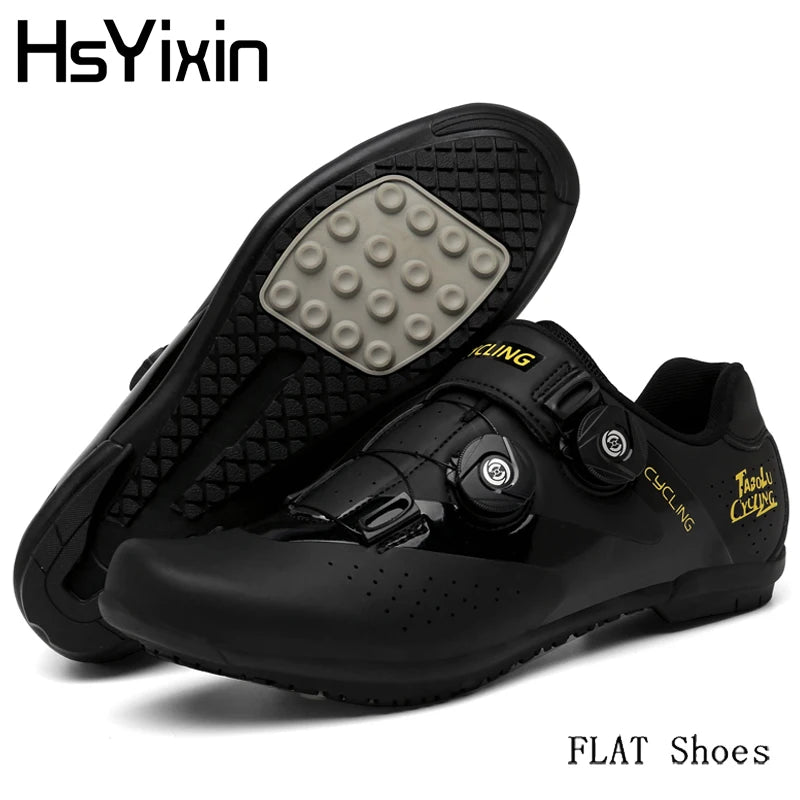 Unisex StyleFeaturing a unisex style, these cycling shoes are perfect for both men and women, offering a universal fit.Self-locking FeatureExperience enhanced stability with the self-locking feature, ensuring secure pedaling during intense rides.Breathable MaterialStay cool and comfortable with breathable material that allows air to flow, reducing sweat and odor.Non-slip DesignConquer any terrain with confidence thanks to the non-slip design that provides superior traction.Flat Rubber SoleEnjoy a flat, stable platform for efficient power transfer and enhanced pedaling performance.
