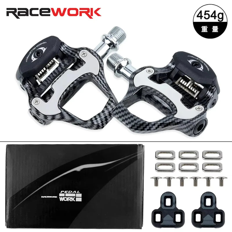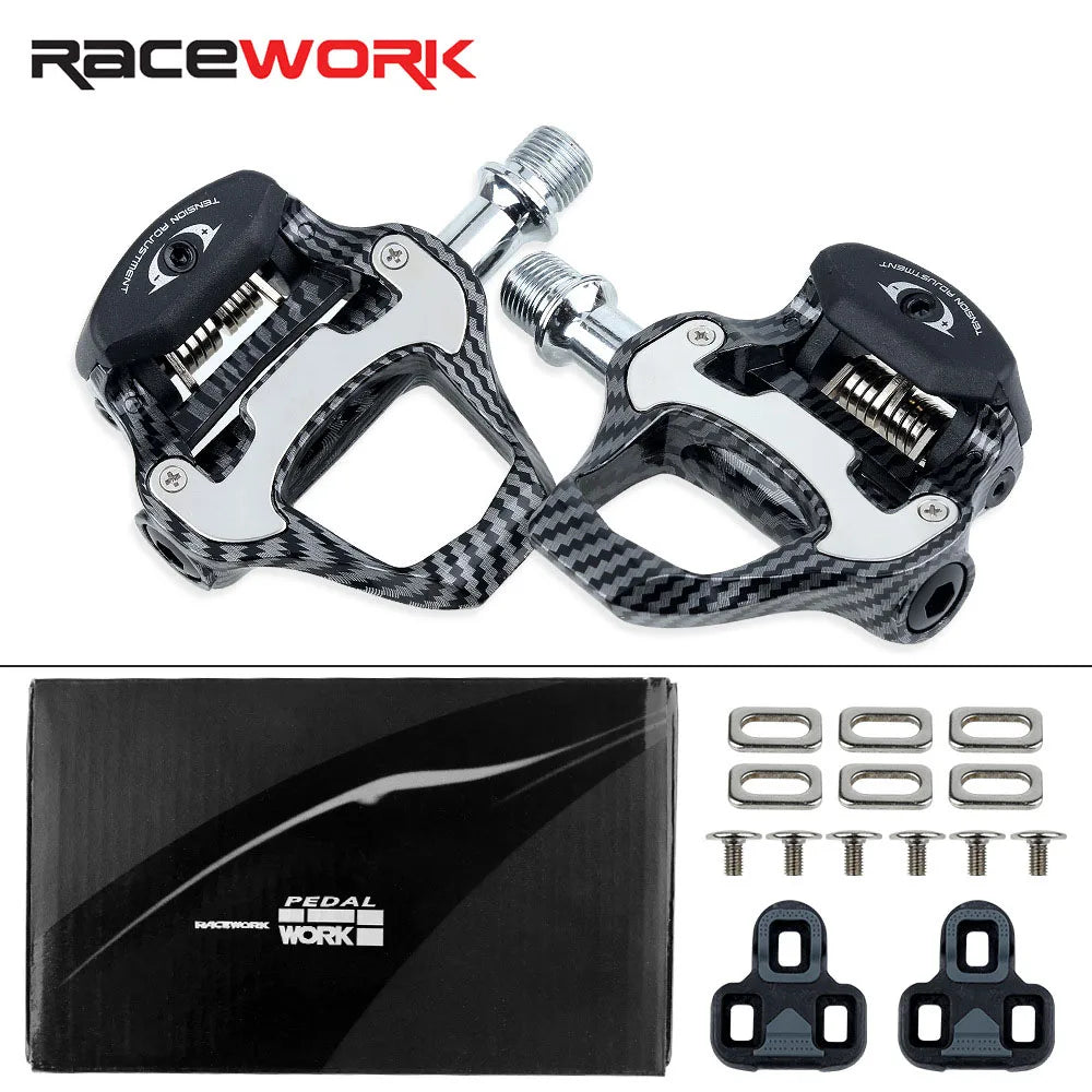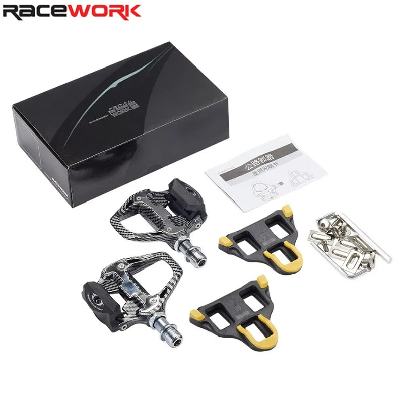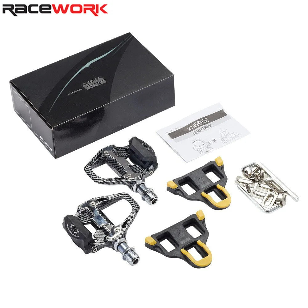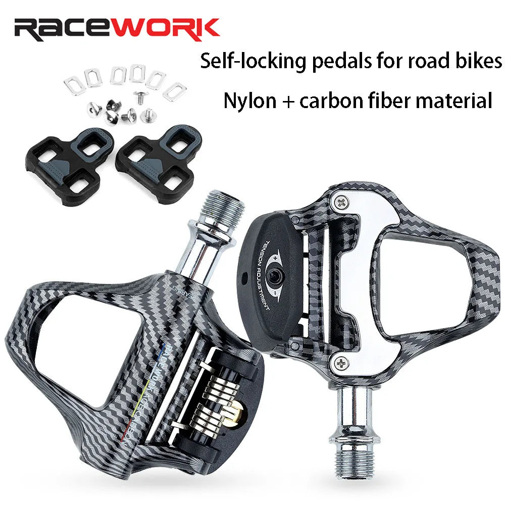 Material:The main body is nylonBearing:Bearings+DUPivot material:Chromium-molybdenum steelType:Bicycle self-locking pedalsParts:Self-locking pedal parts included