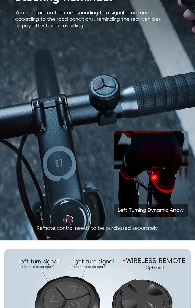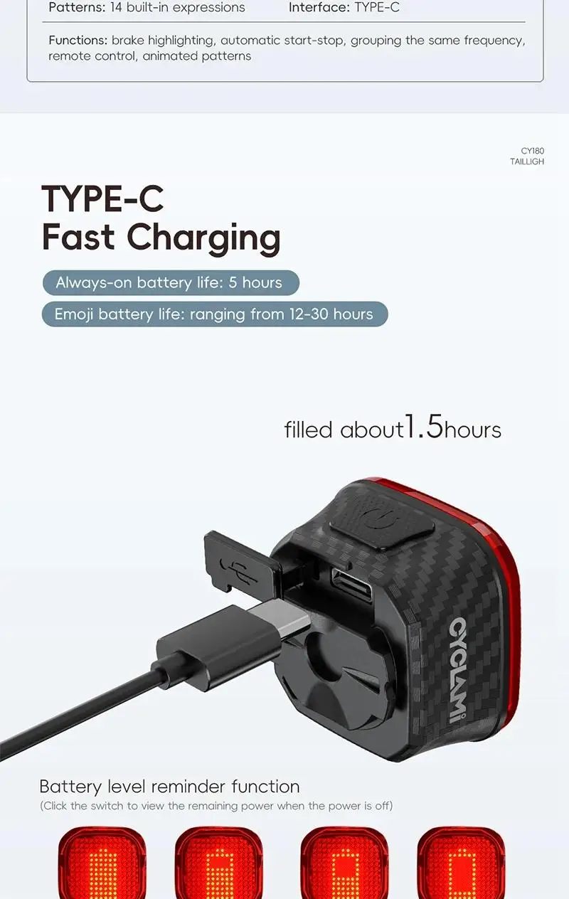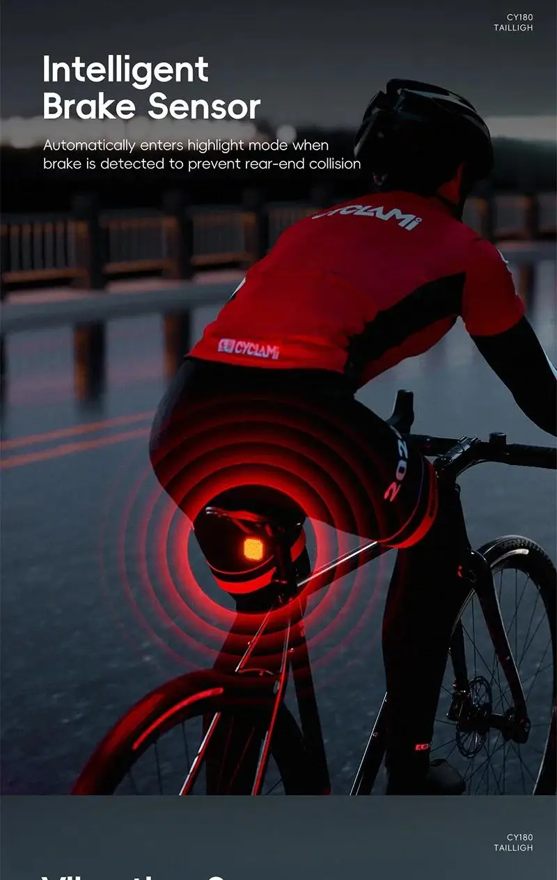 * Intelligent brake sensing: When braking is detected, it automatically enters high-brightness mode to prevent rear-end collisions and improve night riding safety
