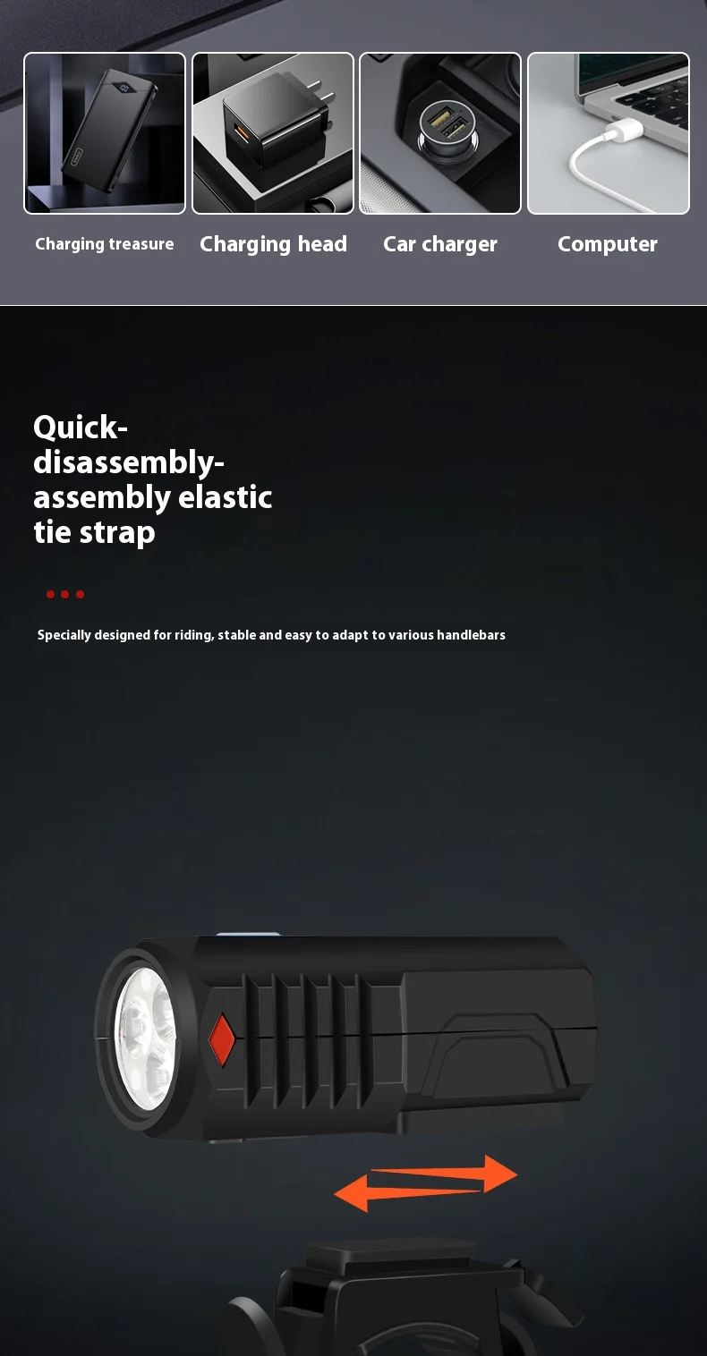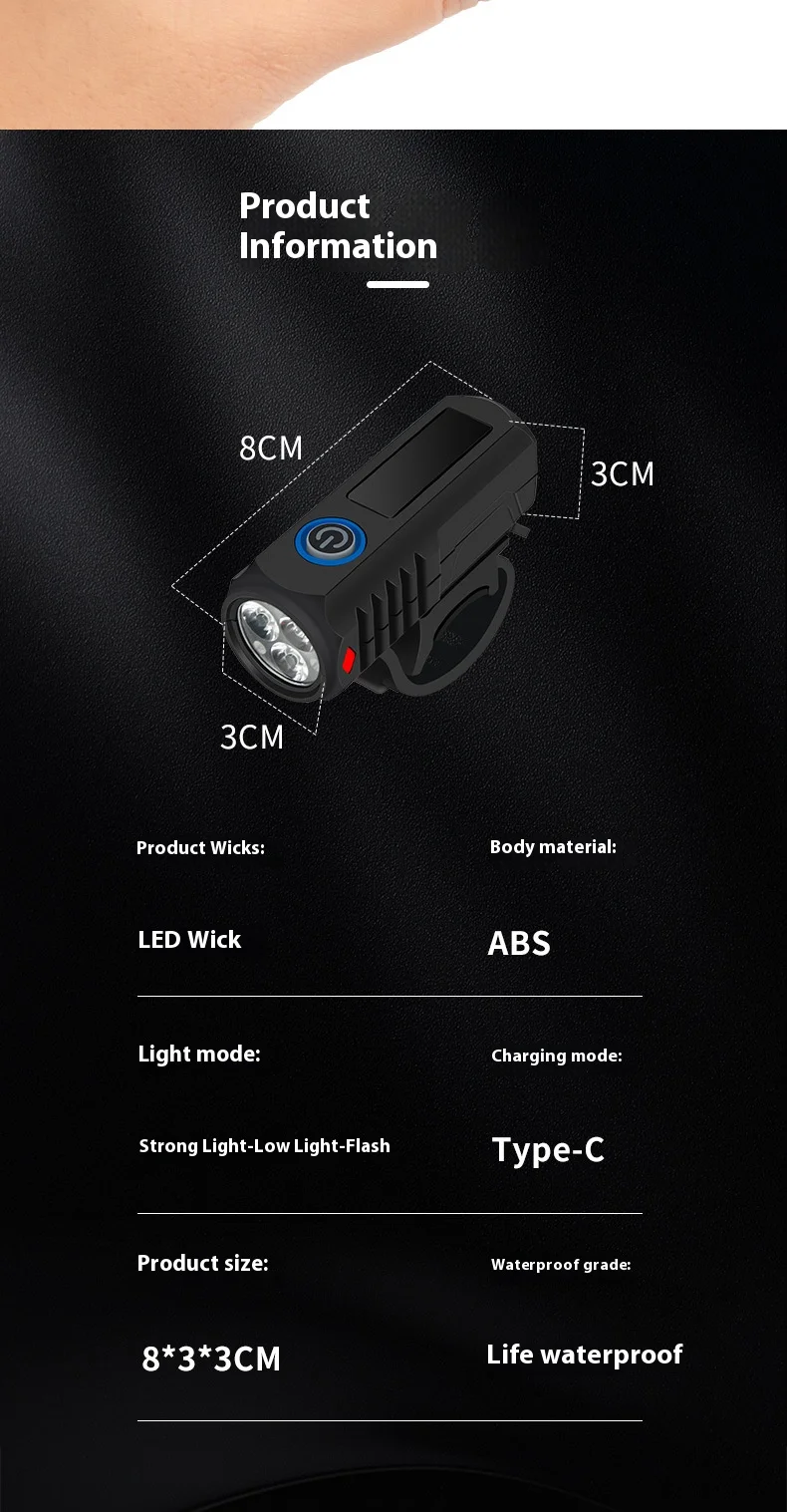 This ultra-bright bicycle headlight is specially designed for cycling enthusiasts, compact and lightweight, easy to hold with one hand, and serves as both a flashlight and a must-have for riding.