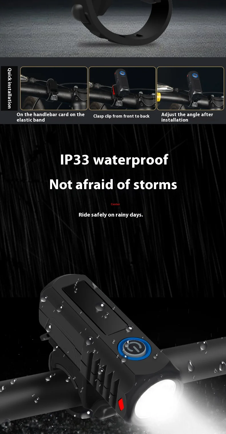 IP33 Water-Resistant: With IP33 water-resistant design, it can withstand heavy rain and storms, ensuring safe cycling even in rainy weather.