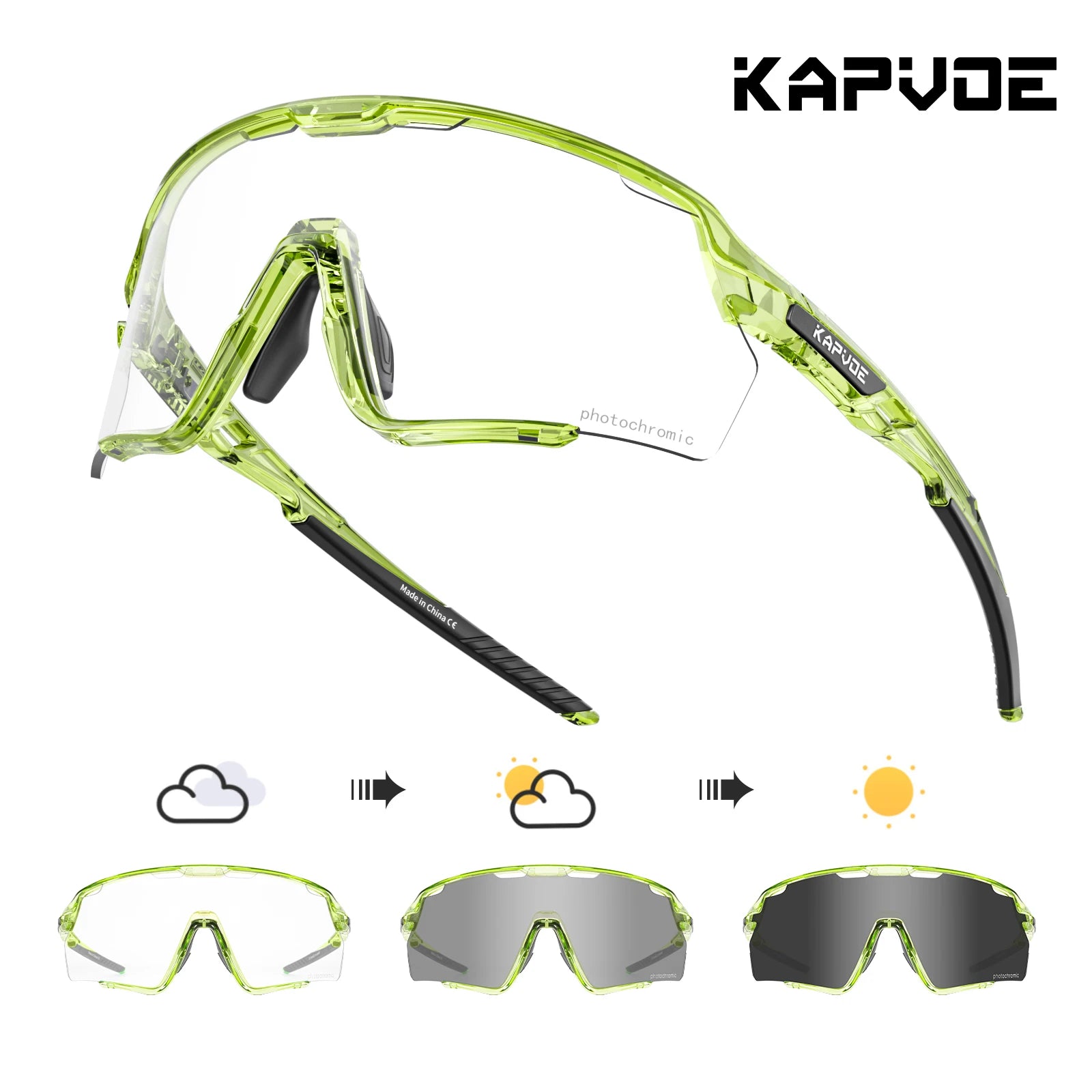 Kapvoe Cycling Glasses Photochromic Cycling Sunglasses UV400 MTB Sports Eyewear Outdoor Bicycle Goggles Bike Cycling Equipment