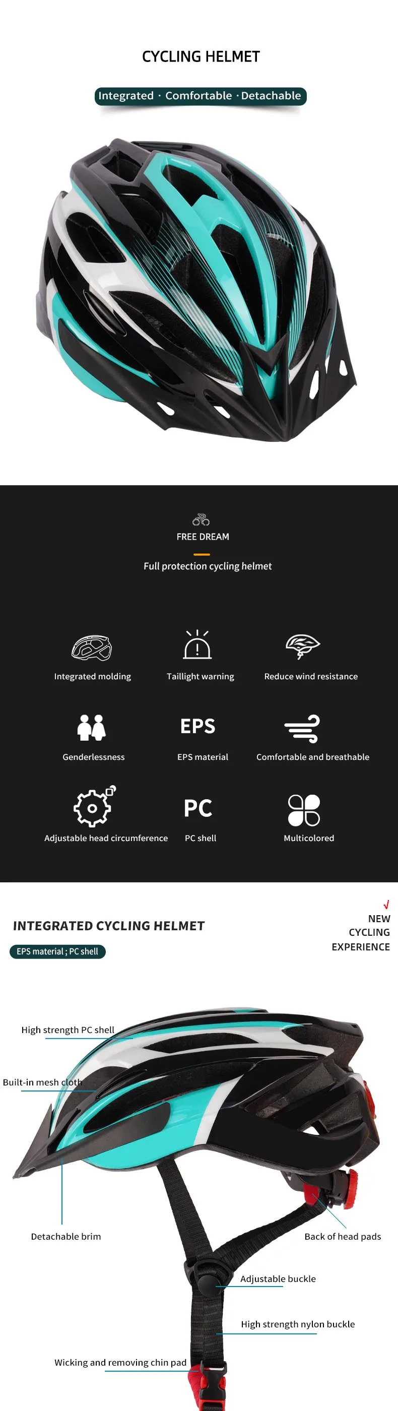 Bicycle Roller Skates Helmet Integrated Shape Men's and Women's Cycling Roller Skates Helmet Can Flash Multi-color Helmet