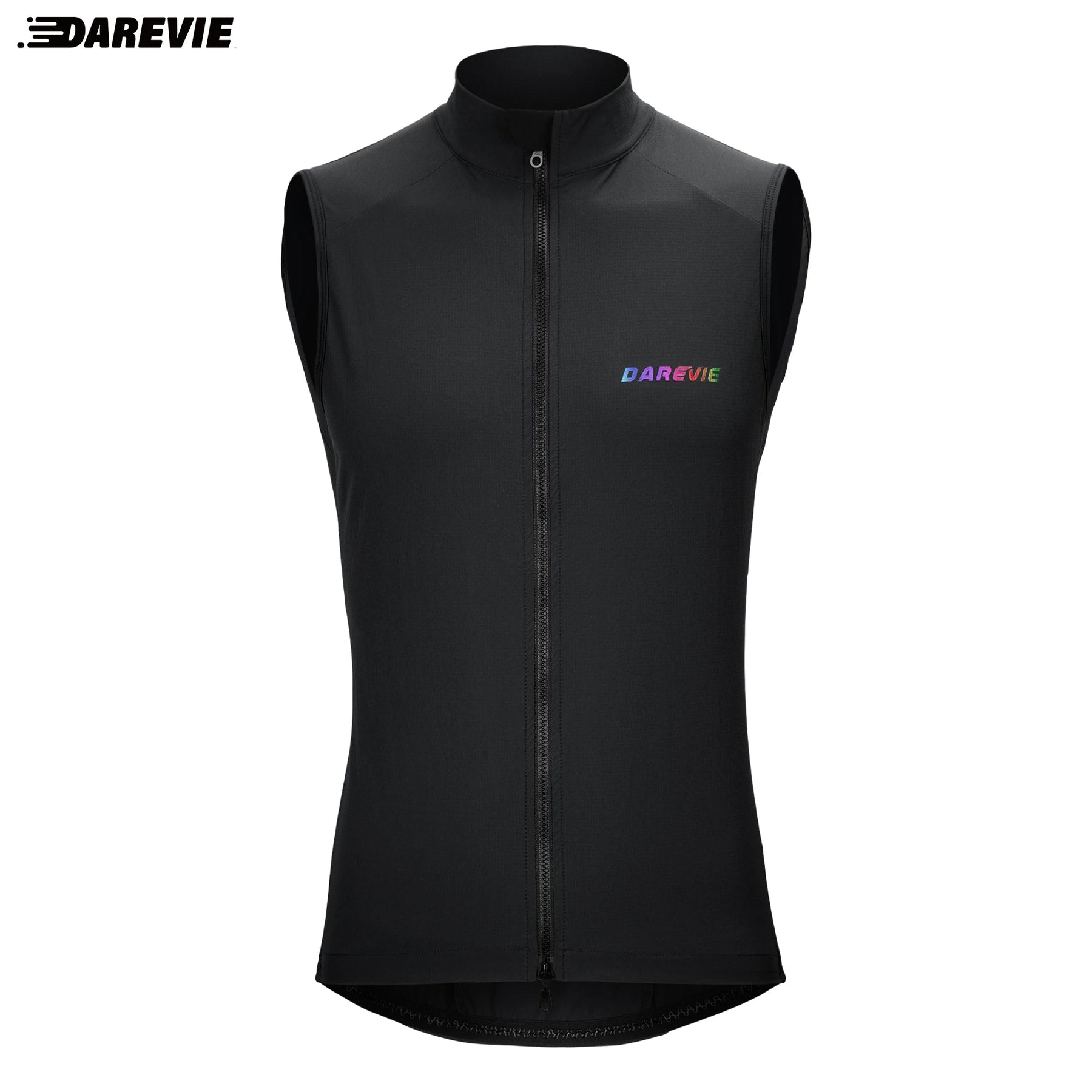 Name: double-zip sleeveless cycling vest No: DVJ202 Size: XS-2XL Weight: 0.16~0.2kg Color: Navy blue Fabric: windproof 4-way stretch nylon plaid woven fabrics Composition: 70D+40D*70D+40D 92%N, 8%SP. Specificities: 70D 150GSM, lightweight, abrasion resistant, water resistant and windproof Breathability: the body fabric is not breathable and sweat can only esca pe through the sides Hem: 2cm anti-slip chain grippers Zipper: YKK double sliders zipper Pocket: 1 back zipper pocket Reflective: chest rainbow reflective logo Tightness: 4-way stretch, slim fit, DAREVIE cycling jersey is pro aero slim fit. If you are strong, please choose 1 or 2 size up. Suit Group: Men / Women Application: MTB/Road Place of production: China