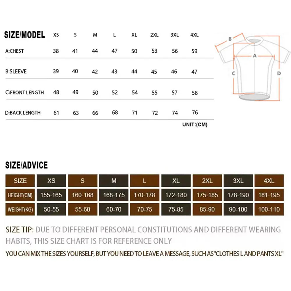 PRODUCT DESCRIPTION ❯Professional Fitting Design - cycling jersey ❯Made of ventilation fabric with sublimation print that never fades out. ❯Full zipper closure. ❯Polyester fabric, for maximum heat transfer, lets cool air in and wicks moisture away from the skin.Elasticity, lightweight, and soft. fits your body perfect. ❯Convenient And Comfortable - Elastic waist with a silicone band can prevent skin from the cloth upglide during riding. ❯Three rear pockets, very convenient to hold your personal stuff.