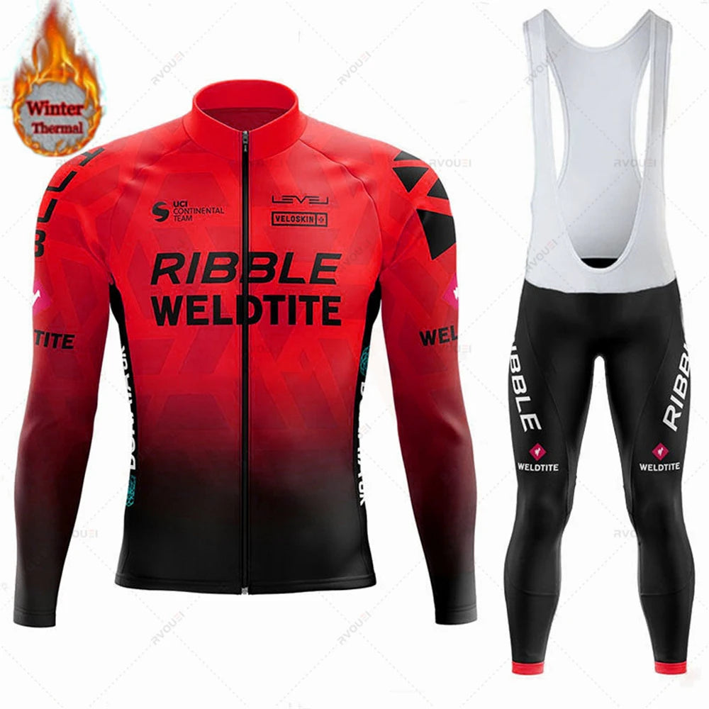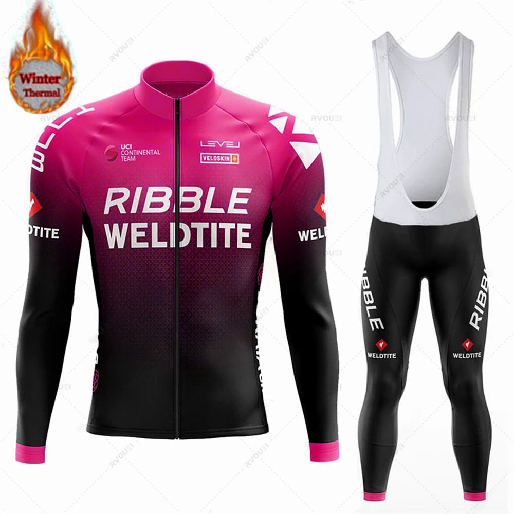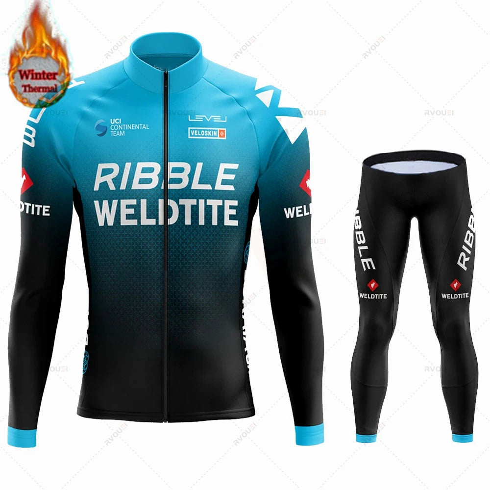 Team 2024 Winter Hot Wool Cycling Jersey Set Men Bicycle Suit Outdoor Sportswear MTB Bike Uniform Maillot Ciclisno Kit Triathlon