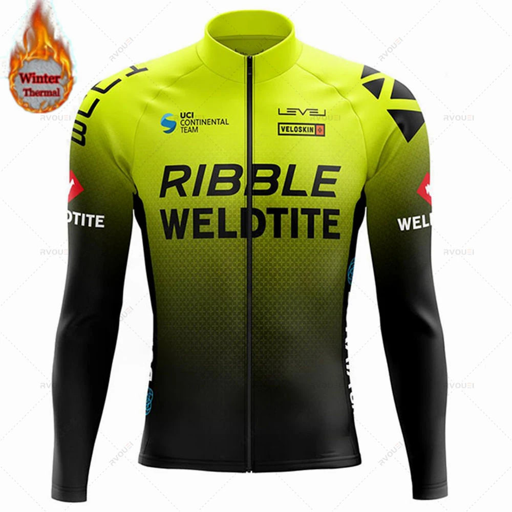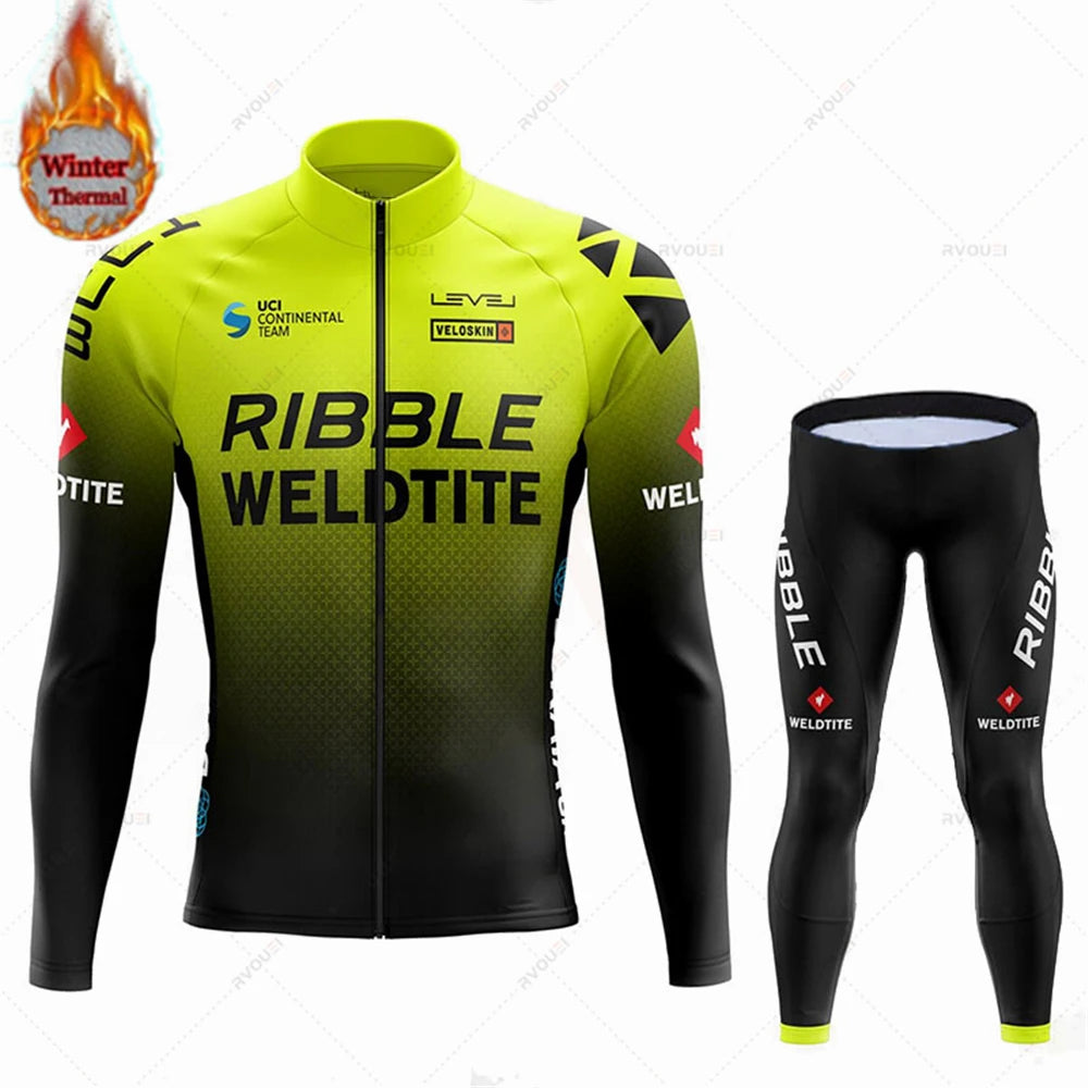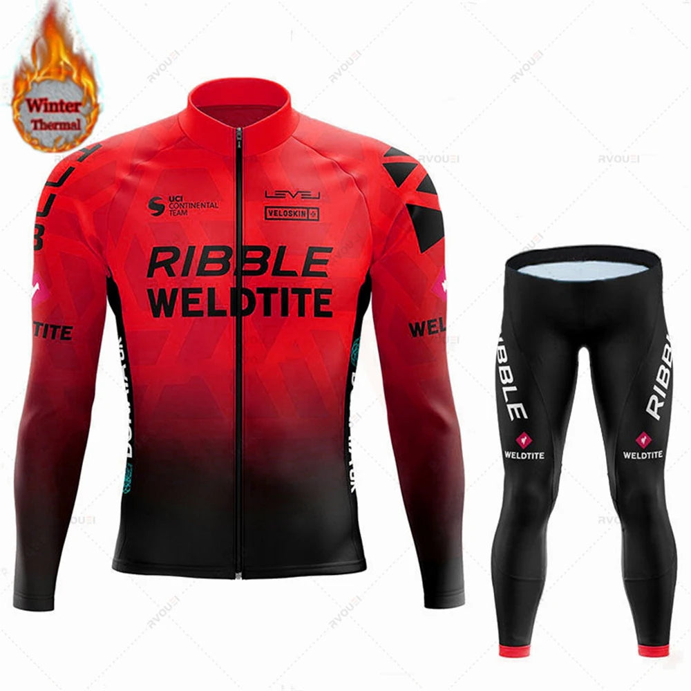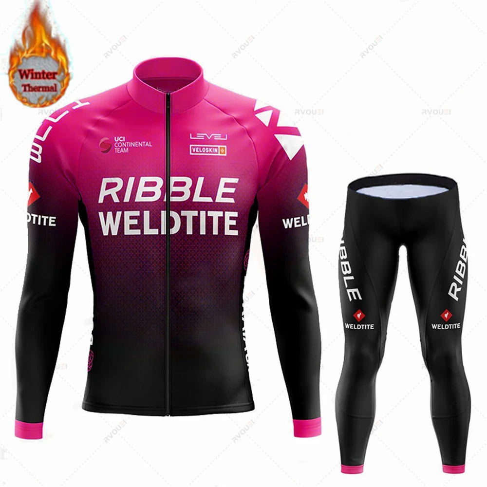 Team 2024 Winter Hot Wool Cycling Jersey Set Men Bicycle Suit Outdoor Sportswear MTB Bike Uniform Maillot Ciclisno Kit Triathlon