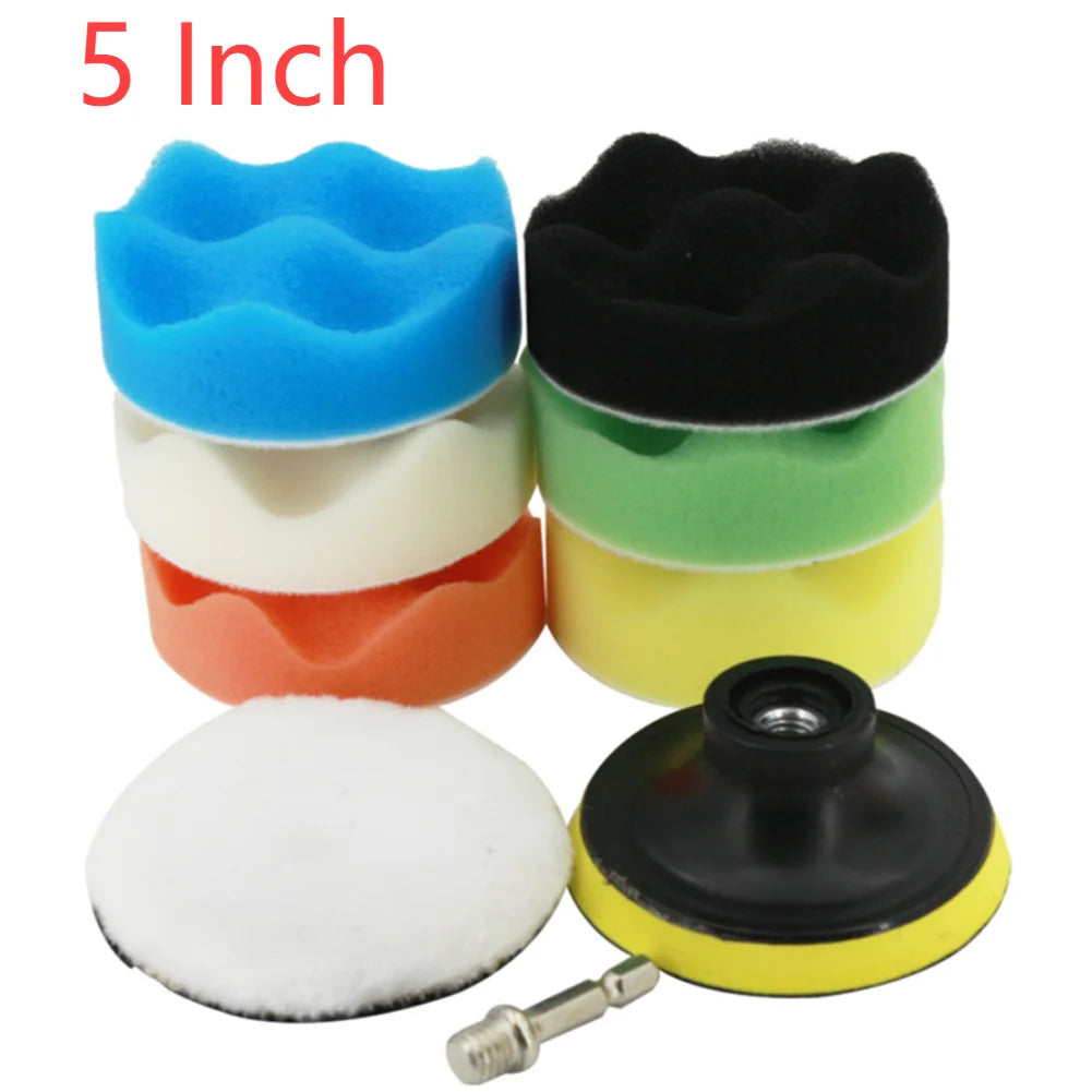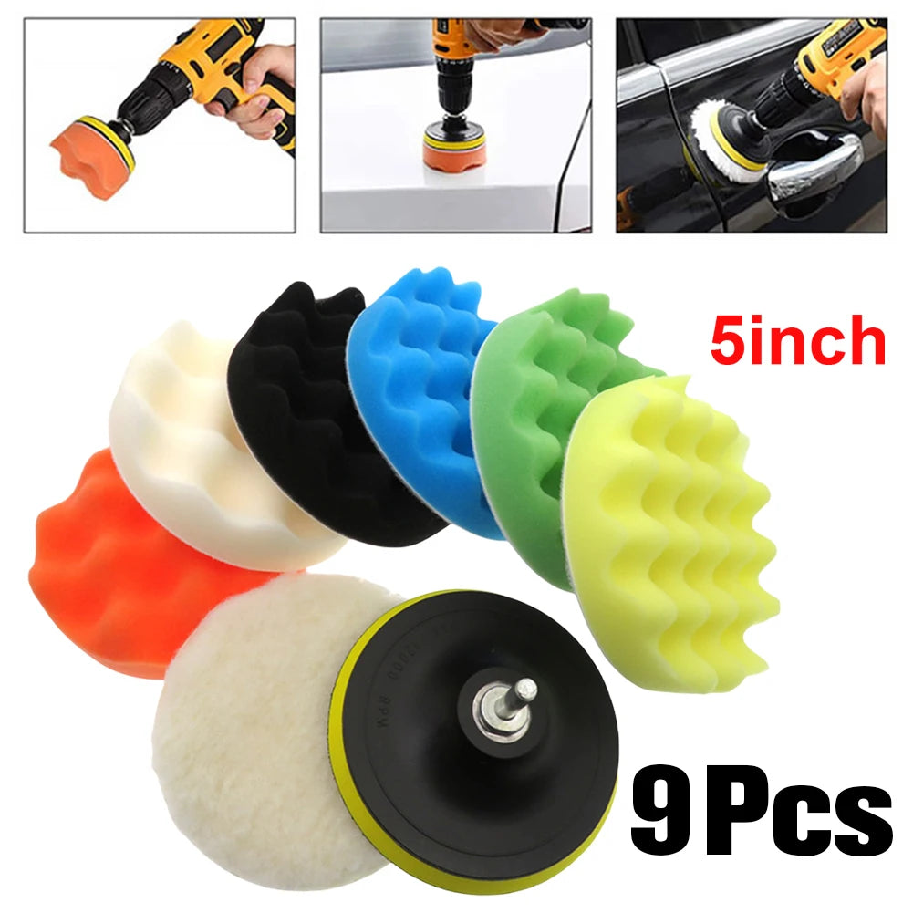 9 Pcs 5 Inch Car Buffing Pads Sponge Foam Kit Wool Buffer Drill Wheel Polisher Buffing Waxing Sponge Pads Kit for Sanding Waxing