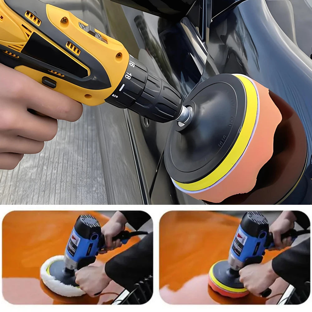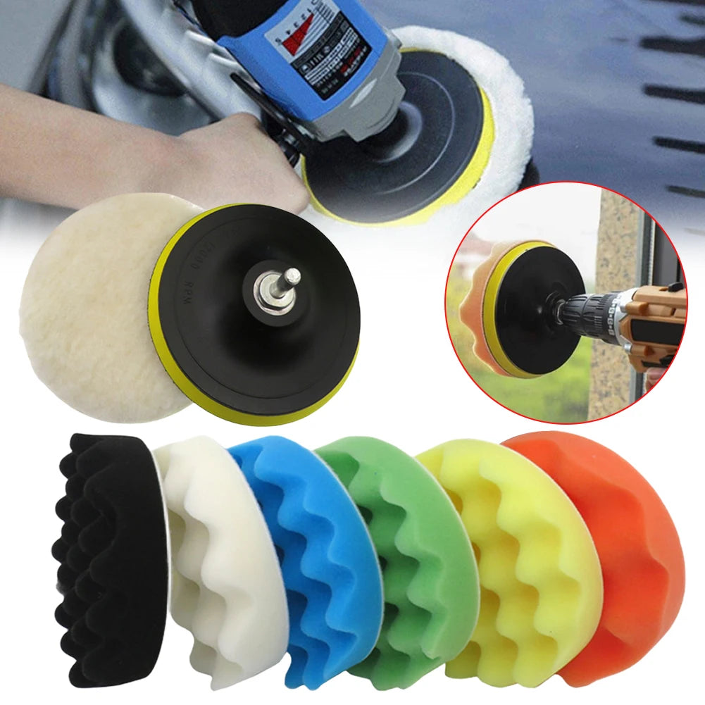 6pcs x 5 Inch Foam Polishing Pad (Blue/Yellow/Orange/Black/White/Green) 1 x 5 Inch Drill Bit Adapter 1 x 5 Inch Threaded Liner 1 x 5 Inch Wool Cushion