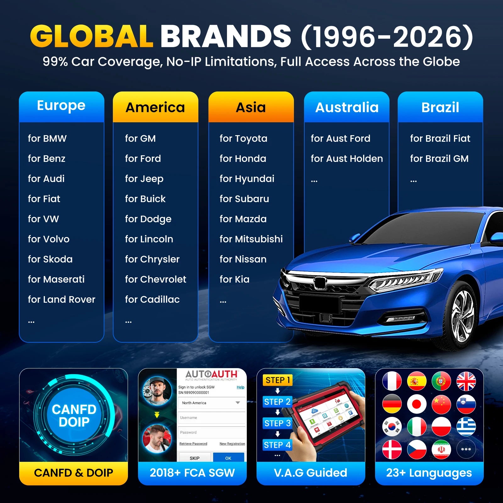 OE-LEVEL All Systems Diagnostic, support 99% Vehicles worldwide